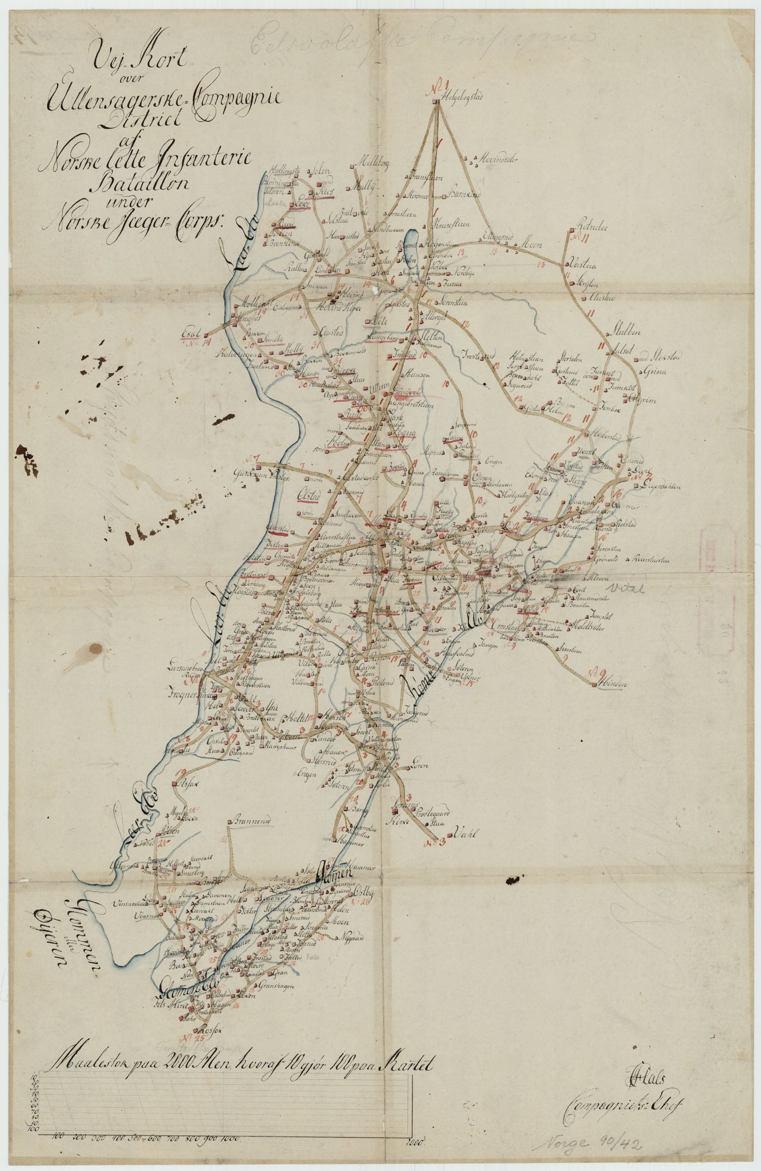 Kartblad 42: Vej-Cort over det Ullensagerske Compagnies District (Under Norske Jægerkorps): Akershus