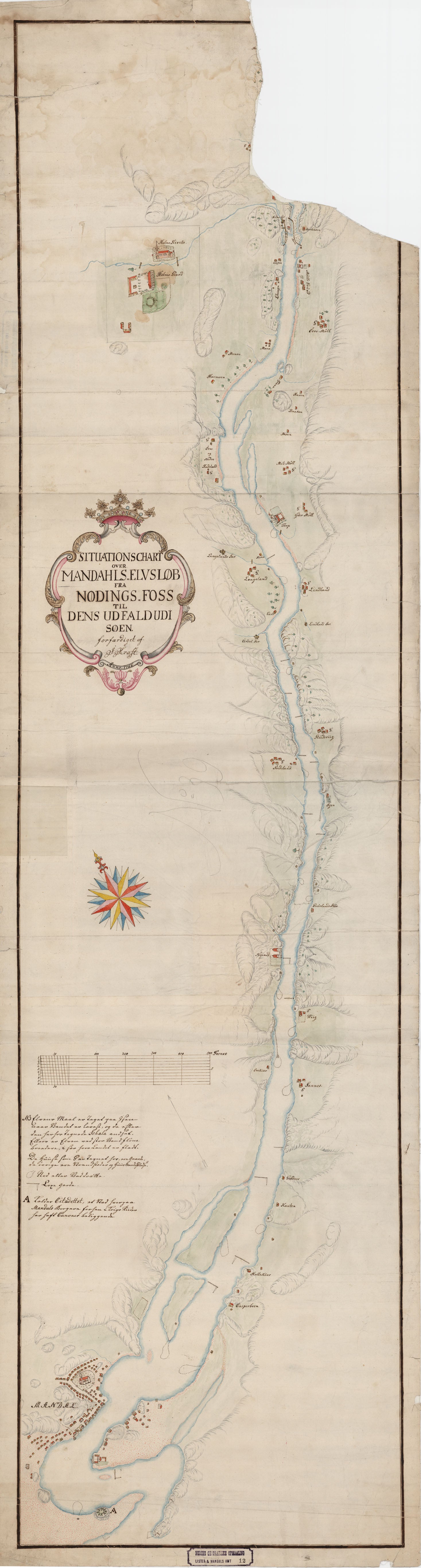 Lister og Mandals amt nr 12: Situations Chart over Mandahls Elvs Løb: Vest-Agder