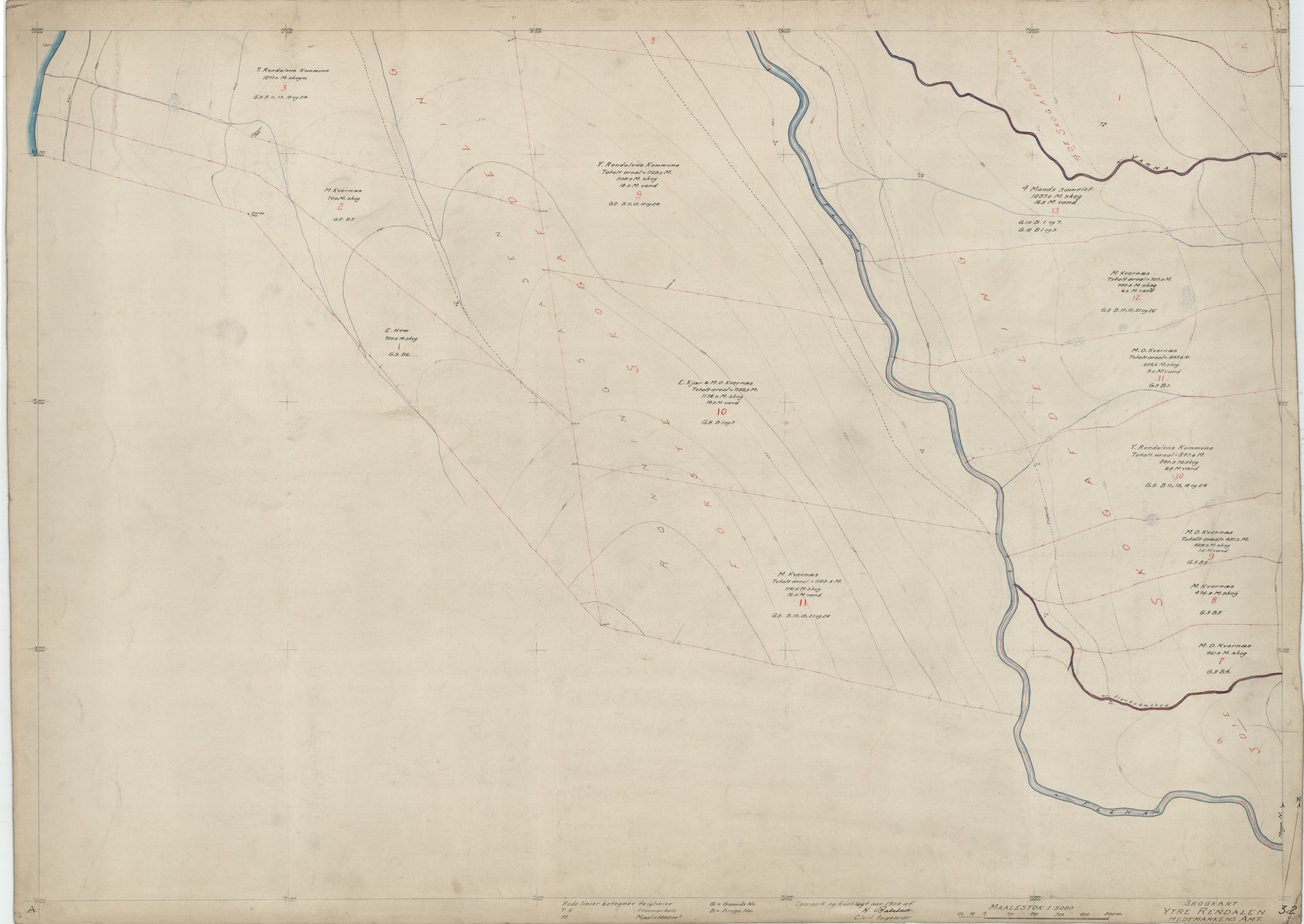 Hedemarkens amt nr 61-32: Skogkart Ytre Rendalen; Hedemarkens Amt: Hedmark