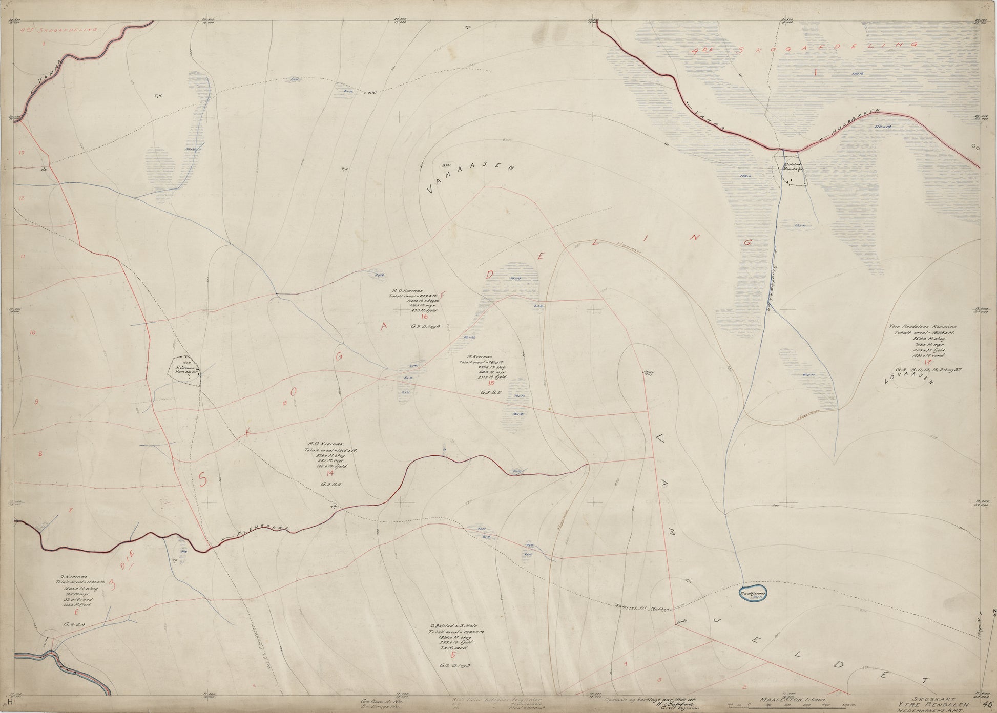 Hedemarkens amt nr 61-46: Skogkart Ytre Rendalen; Hedemarkens Amt: Hedmark